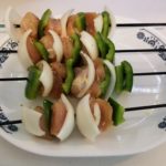 - Alternate veggie and chicken on the skewer. Do not overload it!